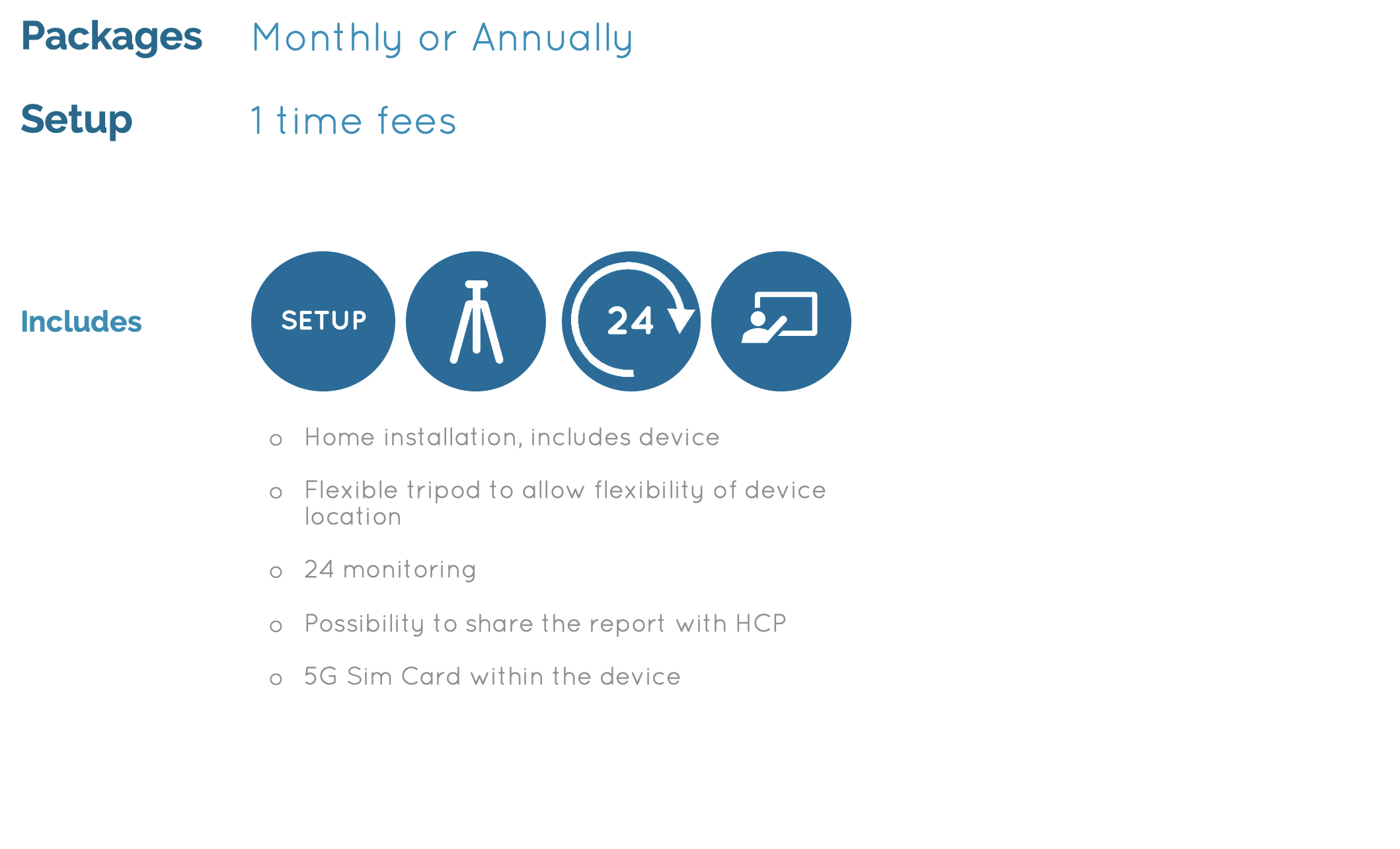 HOM 360 is the first ever continuous monitoring tool. Using AI technology, epilepsy patients, their caregivers, and their treating doctors can get an alarm and record for their seizures at home, while being exposed to HOM 360.